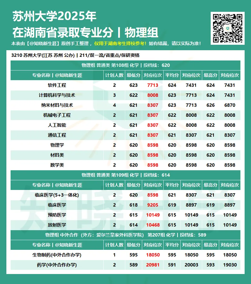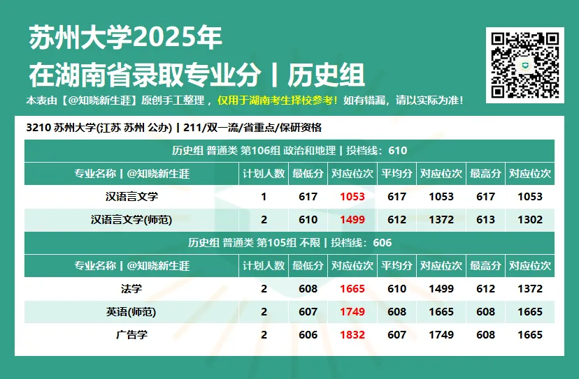 为助力湖南考生与家长科学定位,【知晓新生涯】公众号将陆续发布 《全国各大学2025年在湖南省各专业录取分数线及对应位次》。本数据并已按各专业组的专业录取最低分进行了高低排序,旨在: