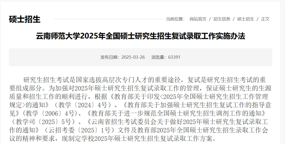 考生须第一时间并持续关注“云南师范大学研究生招生网”及各具体学院(部、所)发布的复试录取工作实施细则。资格审查环节要求细致,除常规材料(身份证、准考证、学历学籍证明、成绩单、政审表、诚信承诺书)外,需特别注意: