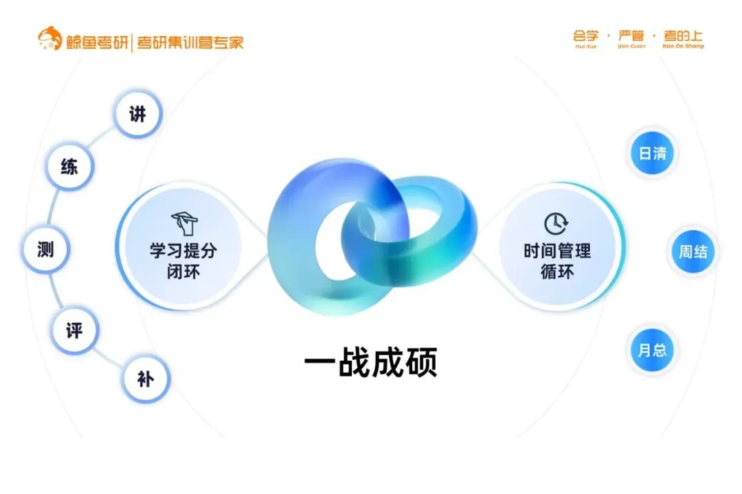 为了解决这个顽疾,冯庆林在创办鲸鱼考研之初,就定下了一条铁律:我们不卖课,我们交付的是“考得上”的确定性。 为此,他带领团队研发了独家的 “双循环科学体系”,彻底终结低效备考。