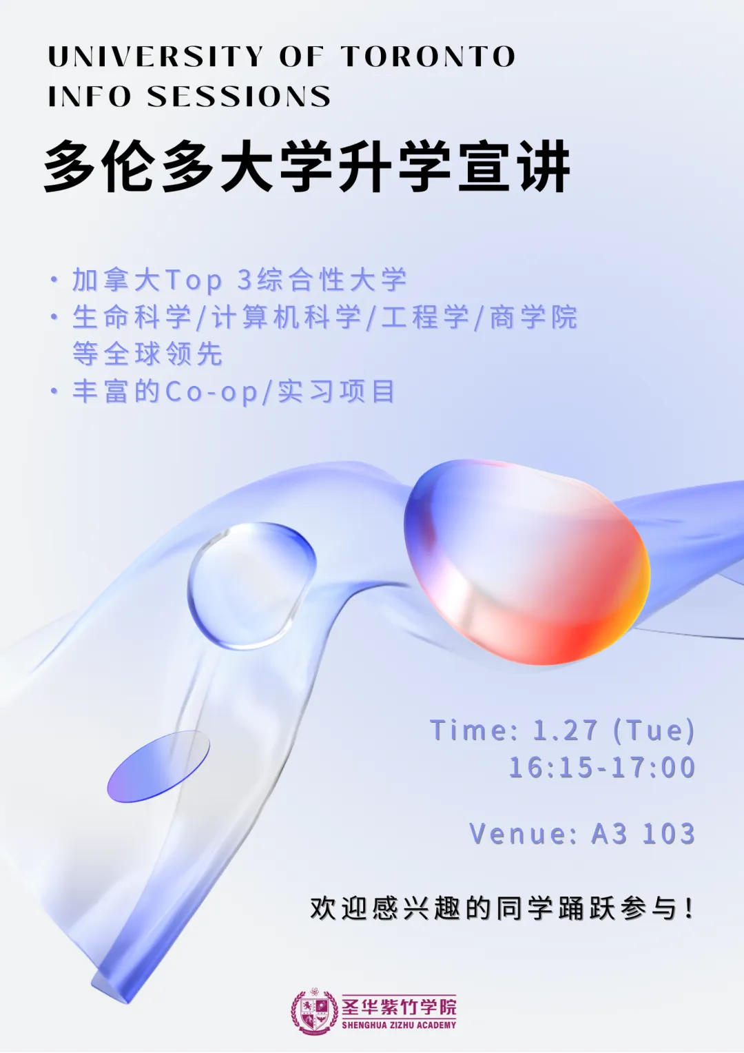 作为本学期大学访校系列活动的最后一场,1月27日(周二),升导办邀请到我们的老朋友——加拿大多伦多大学(University of Toronto)招生官Tracy老师到访我校,为同学们详细介绍学校概况、项目特色以及录取要求,分享最新的申请资讯,帮助大家更全面地了解多大。