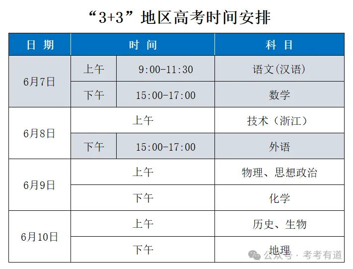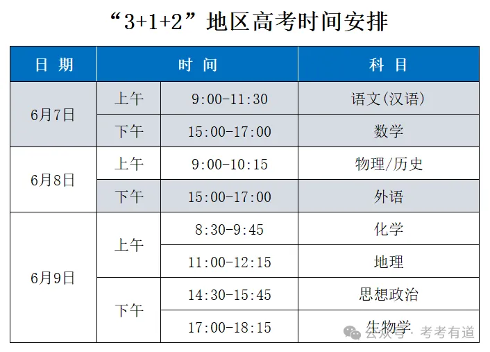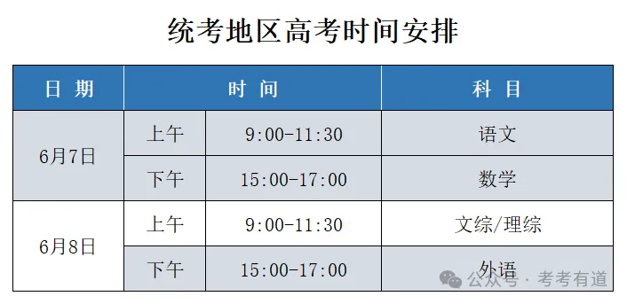 👉注意:由于各省高考政策不同,考试时间安排存在一定差异。主要分以下三种类型: