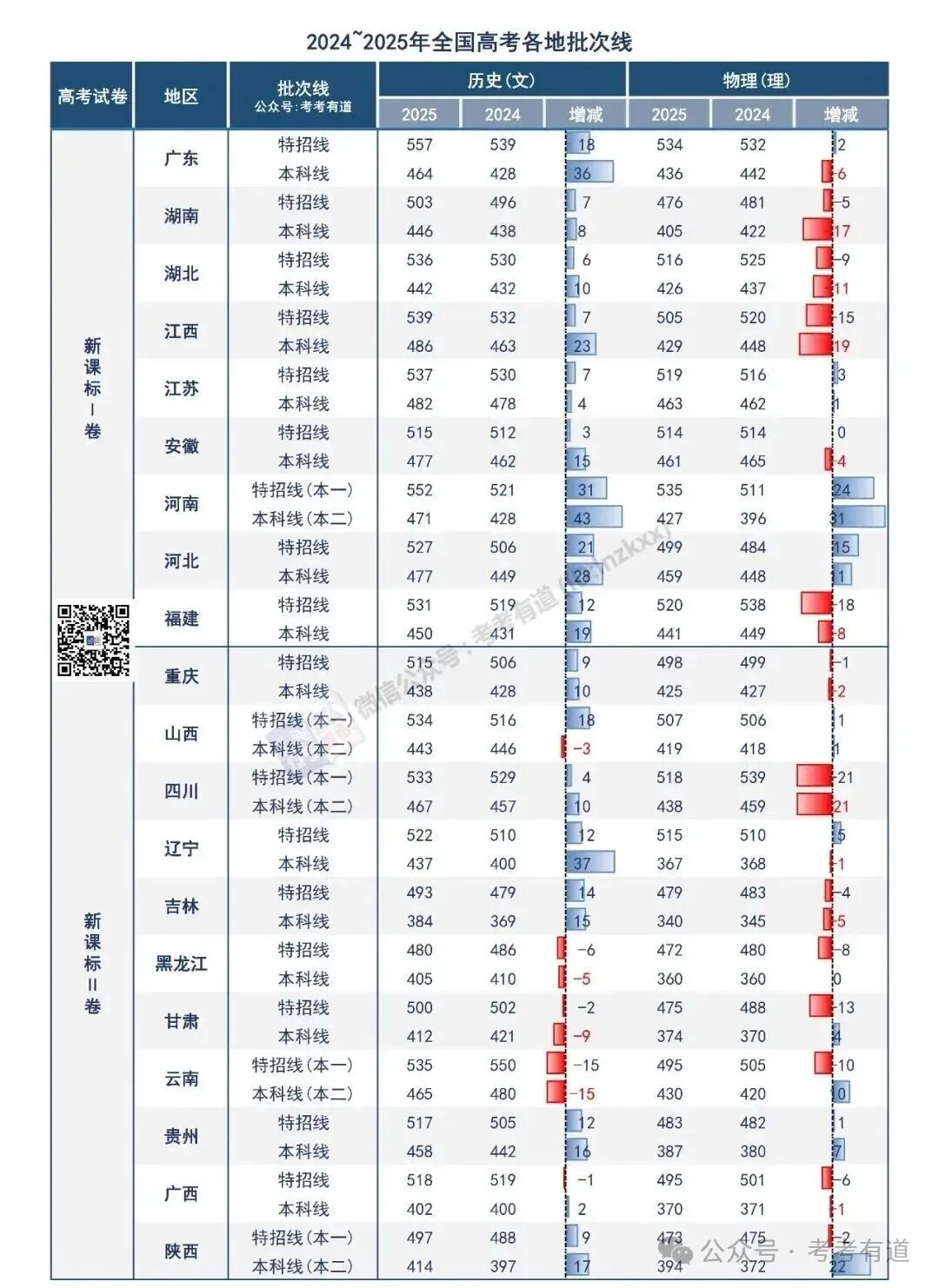 批次录取控制分数线又称省控线或批次线,是由省级招生考试机构根据当年全省考生高考成绩和招生计划,将全省考生分类别从高分到低分排序,综合各种因素后按一定比例分批次分别划定录取考生的最低投档分数标准。录取控制分数线也就是我们通常说的特招线(一本线)、本科线(二本线)、专科(高职)线等。招生院校只能在本院校所在批次录取控制分数线以上录取考生,只有高考成绩达到或超过批次线的考生(通常称“上线考生”)档案,才有可能被投档到高校,由高校选择录取。我们整理了全国各地2024~2025年高考特招分线及本科分线,大家可了解近两年批次线变化。批次线附近的考生要注意,尽量提高成绩远离危险区。
