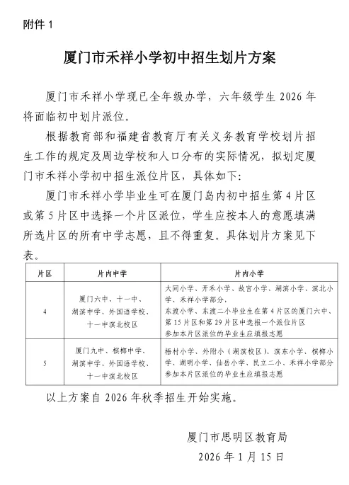 思明区教育局刚刚连发两份重磅文件,涉及禾祥小学和岛内第 7 片区的初中划片调整,2026 年秋季起正式实施,赶紧收好重点👇
