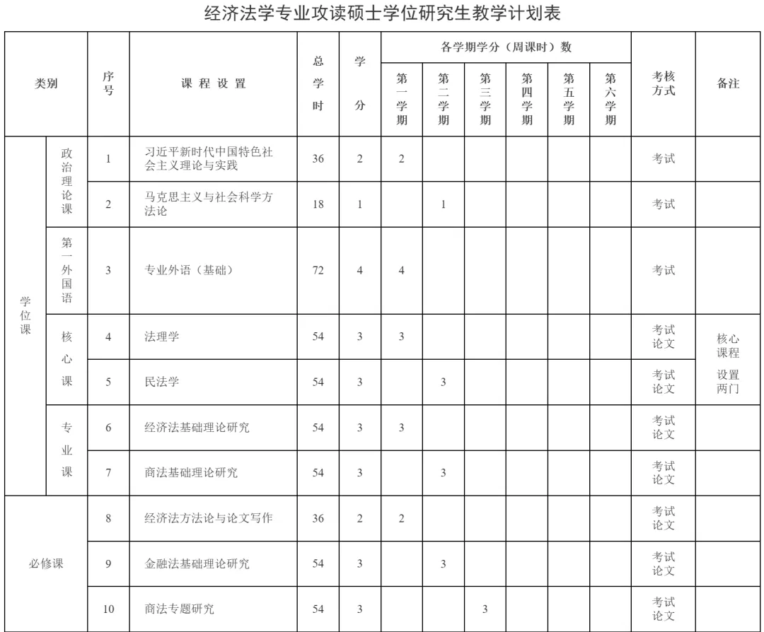 (1)经济法法学方法论与论文写作(36课时,2学分);