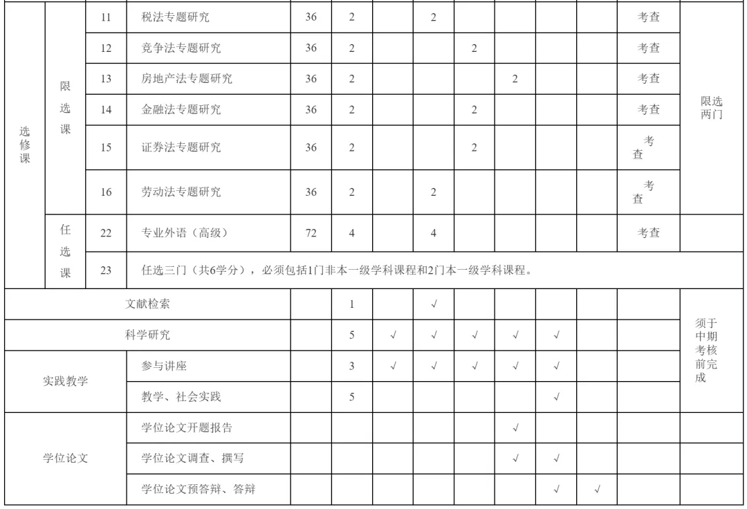 中期考核是硕士研究生完成培养方案规定的课程学习和其他培养环节并修满规定的学分后,正式进入学位论文研究阶段前的考核,重点考察学生对本专业基础理论和基本方法的掌握。中期考核的具体要求以《华东政法大学硕士研究生中期考核办法》为准,主要从思想品德、学习态度、学习成绩、科研能力、实践经验等方面对硕士研究生进行综合评定。经中期考核合格者,方可继续进入硕士学位论文阶段的研习。