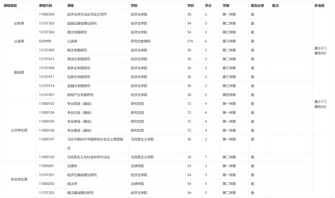 华政考研各专业培养方案之经济法
