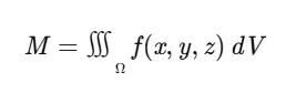 三重积分的本质是空间物体的质量计算。设空间区域Ω内任意一点(x,y,z)的体密度为f(x,y,z),则该物体的总质量M可表示为: