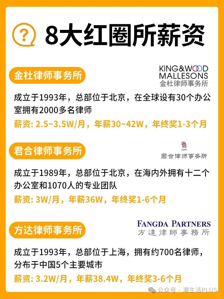 广大法学生挤破头想进入这些律所,可以说进入“红圈所”未来可期,这八大律所分别是:金杜(KWM)、君合(Jun He)、方达(Fangda Partners)、竞天公诚(Jingtian& Gongcheng)、通商(Commerce&Finance)、环球(Global Law Offices)、海问(Haiwen & Partners)、中伦(Zhong Lun)。