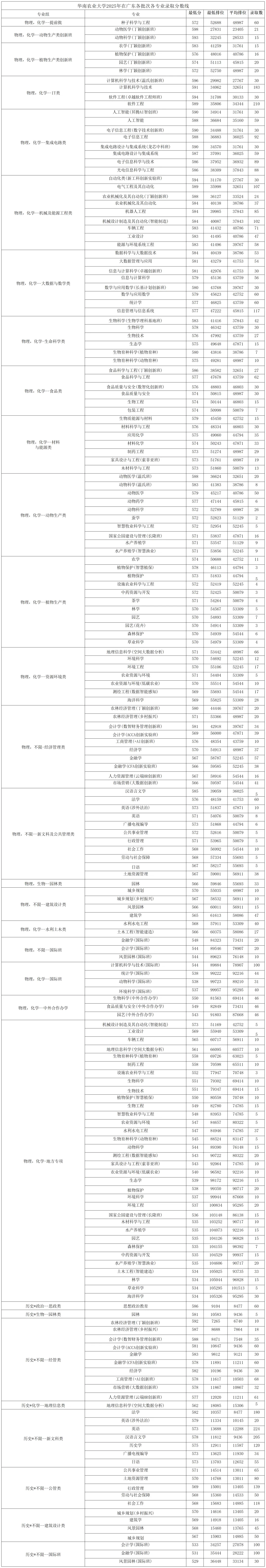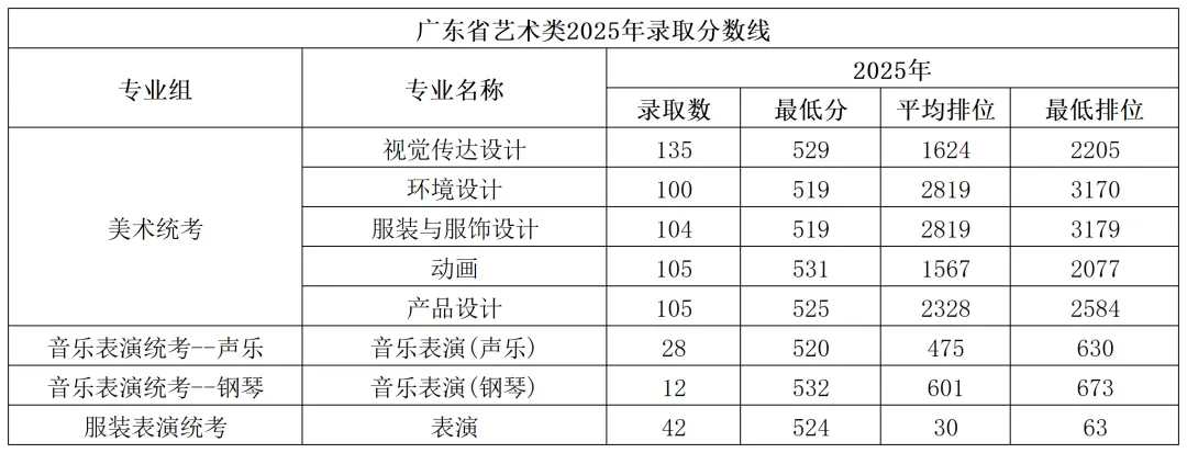 华南农业大学2025年广东艺术类各专业录取分数线