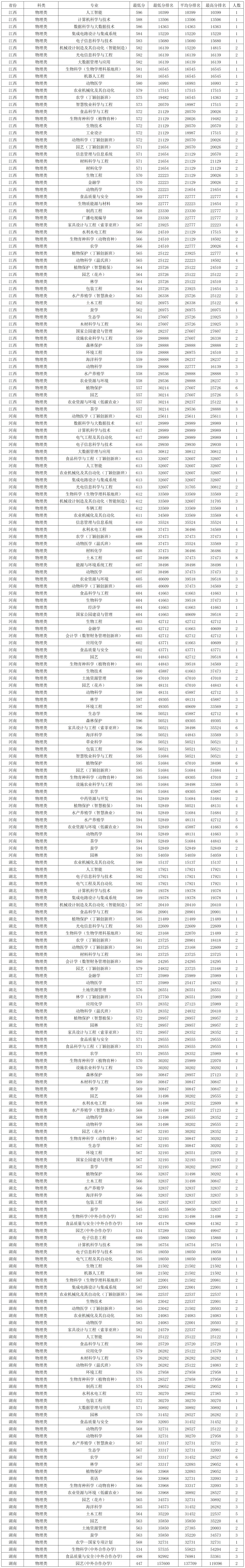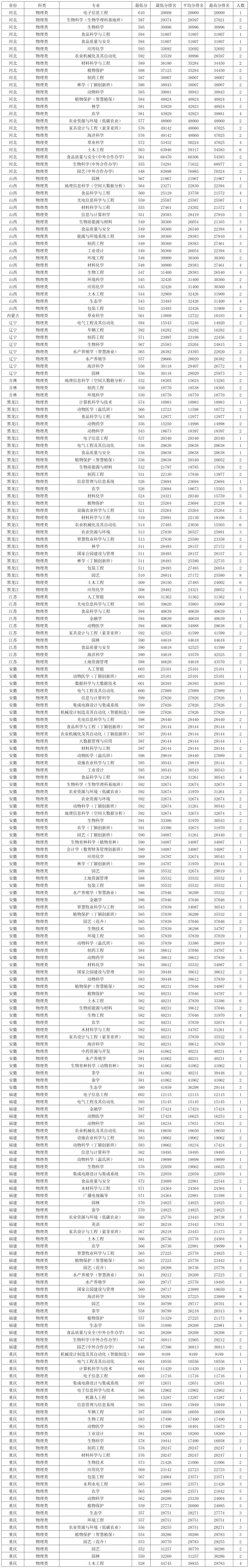华南农业大学2025年在河南物理类录取分数线较高的专业:动物医学(丁颖创新班)621分、数据科学与大数据技术617分、计算机科学与技术617分、电气工程及其自动化617分,最低的是园林 593分,最低分位次54059。