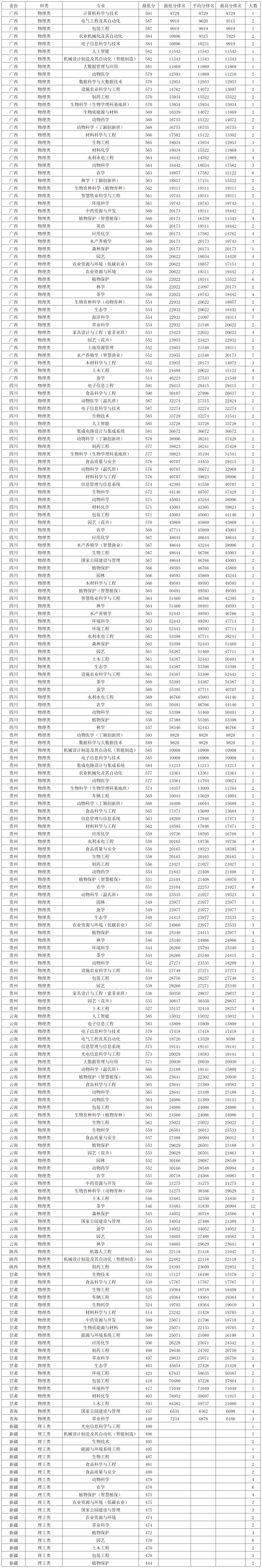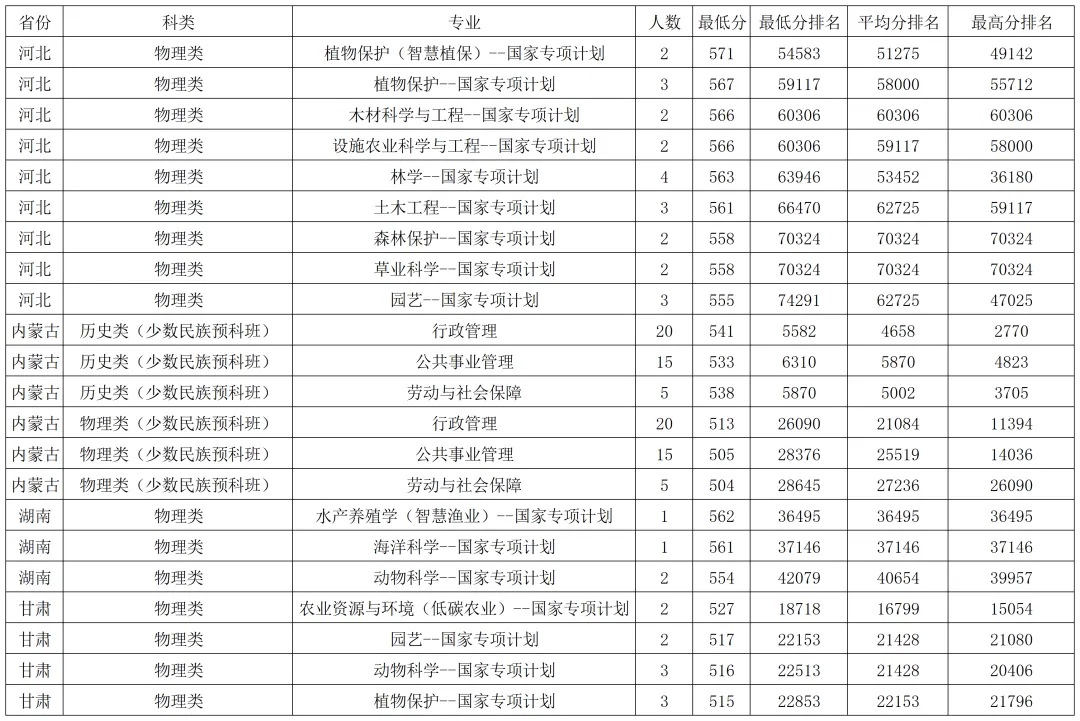 华南农业大学2025年国家专项在各省录取分数线