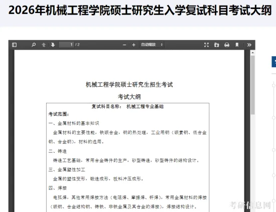 山东理工大学机械工程学院发布了2026年硕士研究生入学复试科目考试大纲。