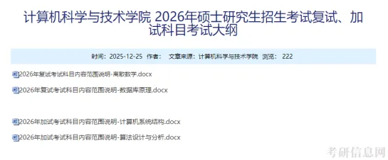 哈尔滨工程大学计算机科学与技术学院发布了2026年硕士研究生招生考试复试、加试科目考试大纲。