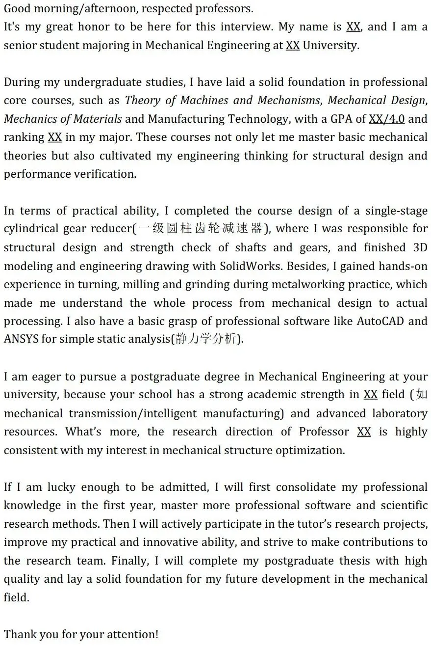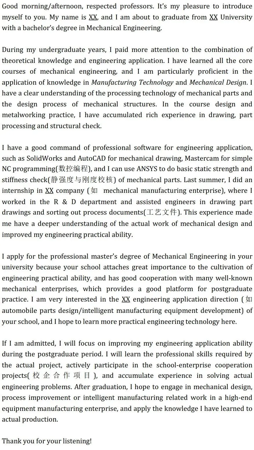 另外考虑有些导师可能会让考生用英文自我介绍,我也同步翻译了三个版本的英文版(大家可以通过咨询学长学姐,看看历年有没有导师要英文自我介绍