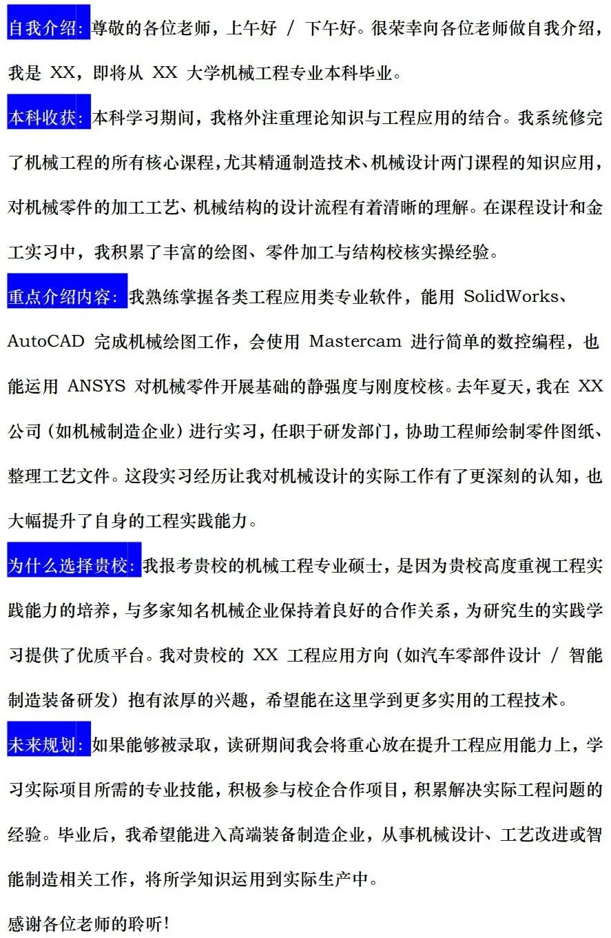 >考研复试-自我介绍模版(附英文版)