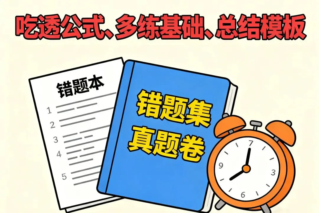 ✅ 错题复盘:每周回顾,避免重复踩坑:建立错题本,标注错题原因(公式遗忘、计算失误、思路错误),每周花1小时回顾错题,重做同类题目,确保同类错误不再犯。