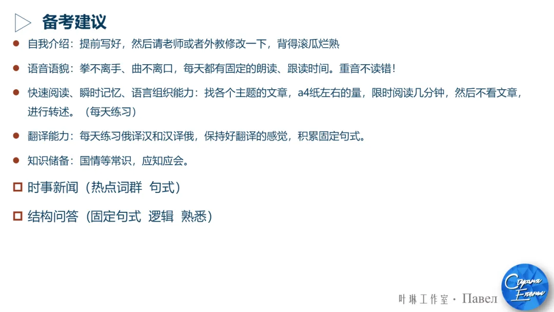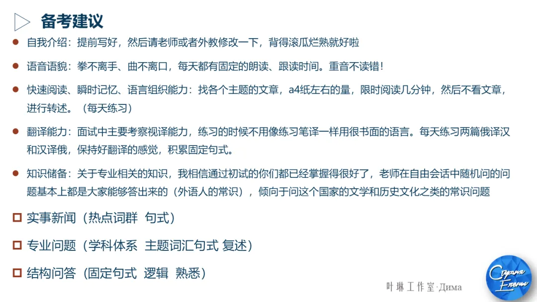 2、2026年上半年将参加国考各部委俄语面试的学员,需要加强口译能力的学员;