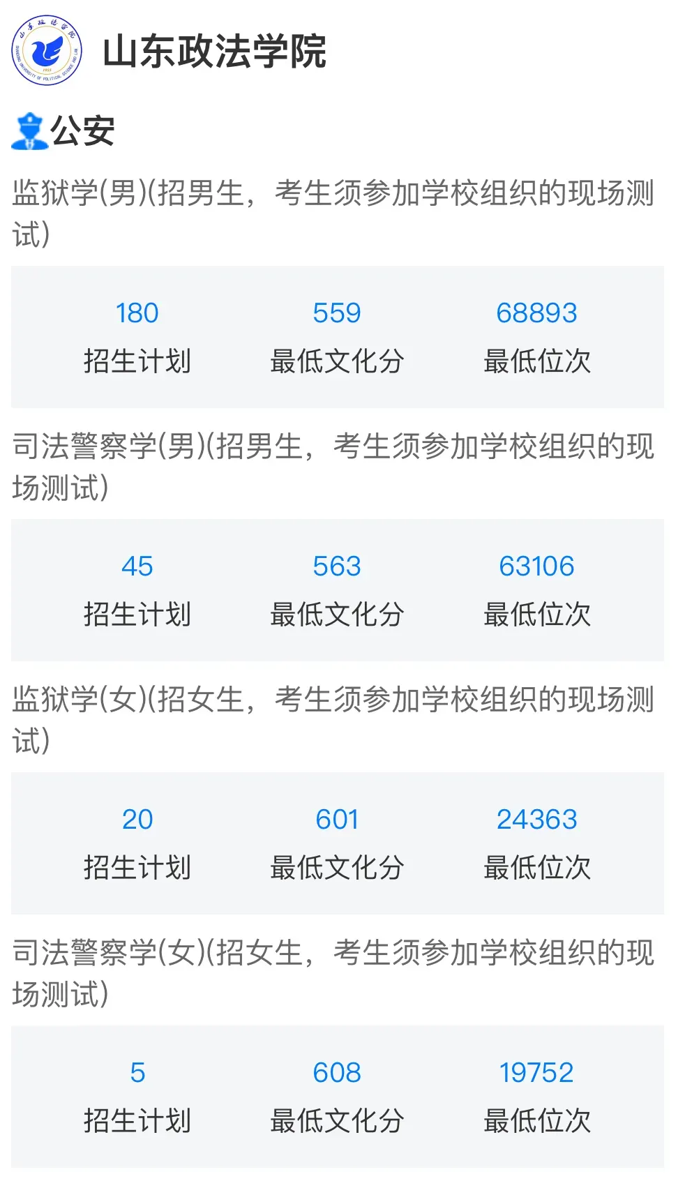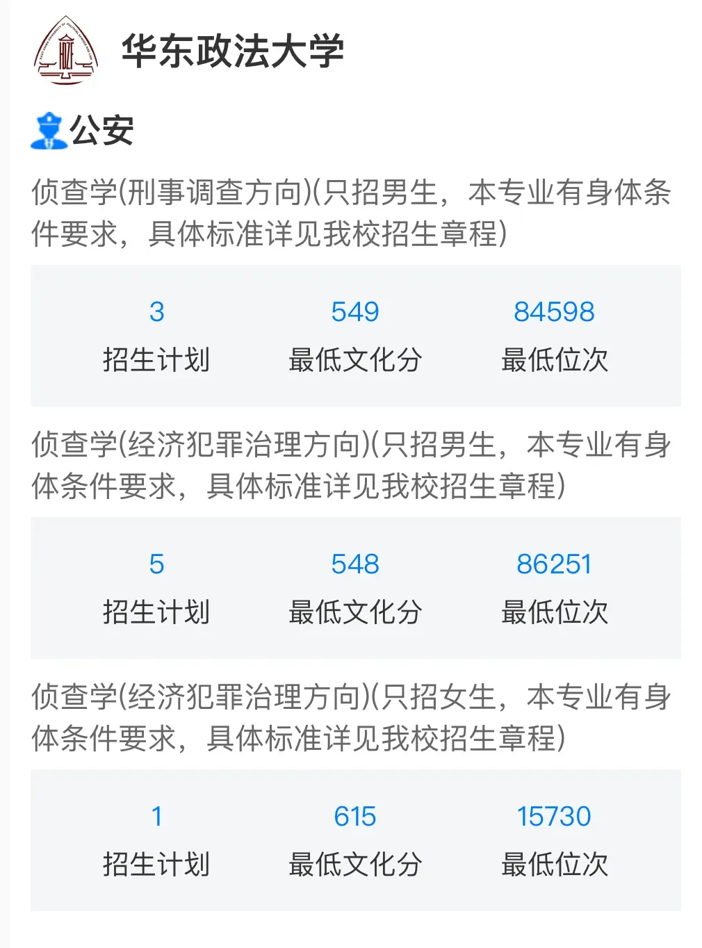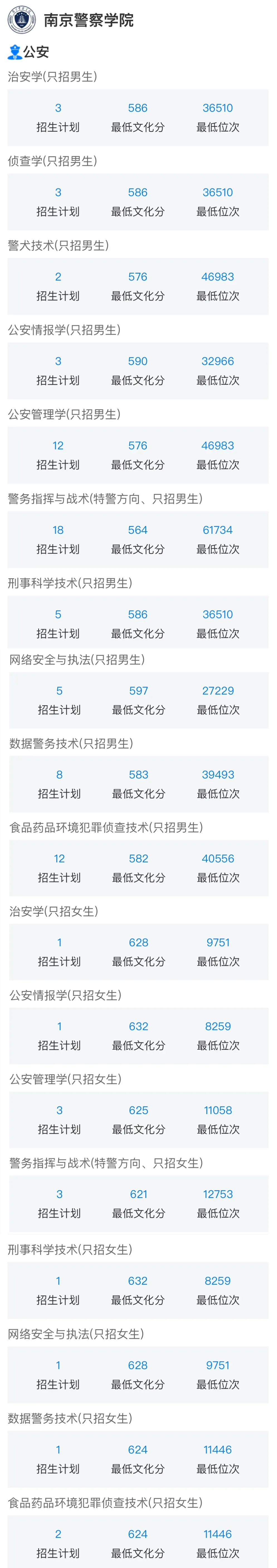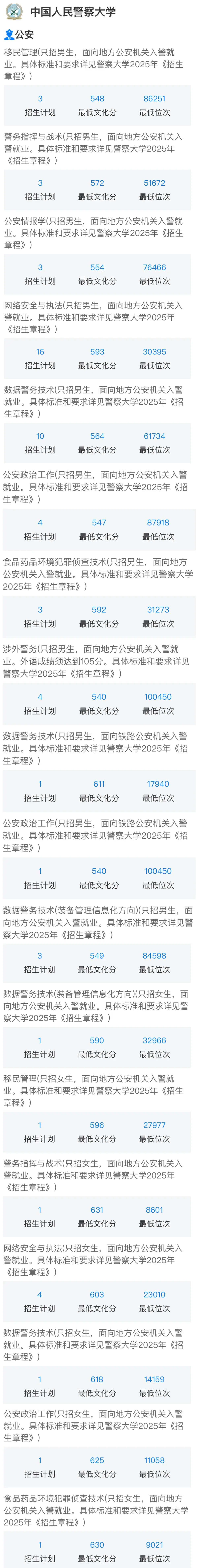 2025年公安院校在我省公安专业招生全部为本科计划,分别为: