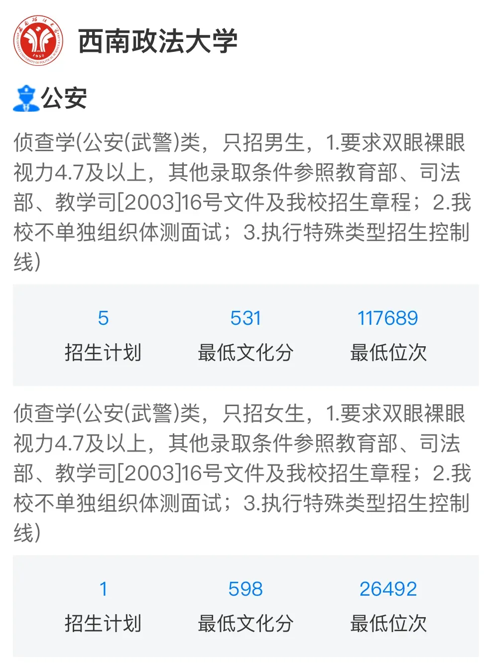 新增专业(国内安全保卫):明确要求物理+化学,无政治要求
