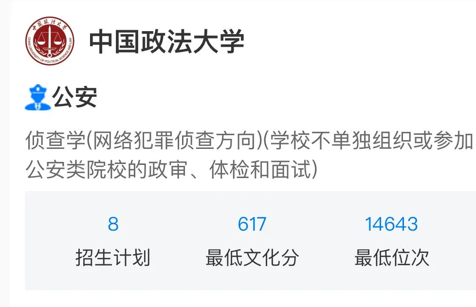 中国人民公安大学98人(面向地方公安机关入警就业93人、含2个公安英烈子女计划,面向铁路公安机关入警就业1人,面向海关缉私部门入警就业2人,面向移民管理机构入警就业2人)