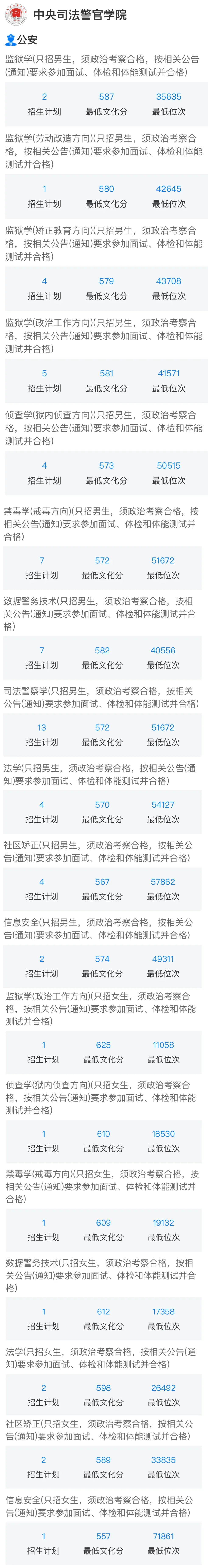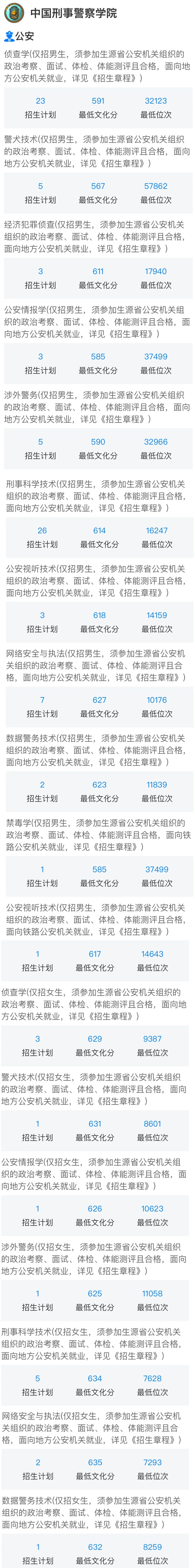 中国人民警察大学61人(面向地方公安机关入警就业59人,面向铁路公安机关入警就业2人)