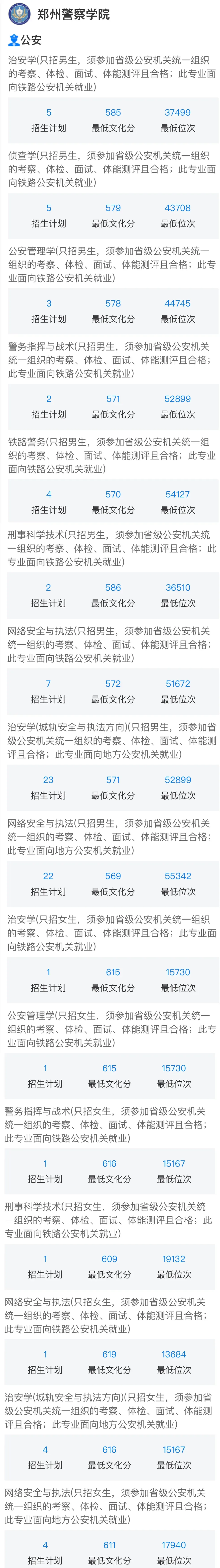 郑州警察学院86人(面向地方公安机关入警就业53人,面向铁路公安机关入警就业33人)