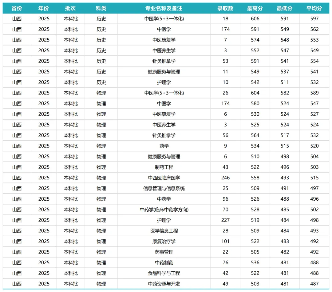 数据均来源于山西中医药大学招生网,大家可以下载图片自行浏览查看,欢迎大家转发。高考资讯/升学规划/志愿填报/新高考选科