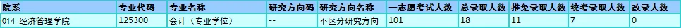 101人报考,录取18人,报录比约5.6:1,经管类热门专硕竞争白热化。