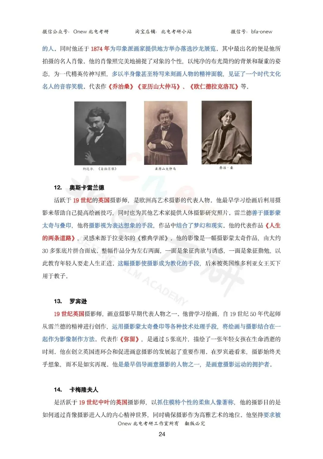 内容涵盖世界摄影史发展多个阶段必学知识,摄影术的诞生——早期摄影探索(摄影师)——摄影发展初期画意摄影——现代摄影时期(摄影师)——西方现当代摄影发展——女性摄影以及摄影博物馆。