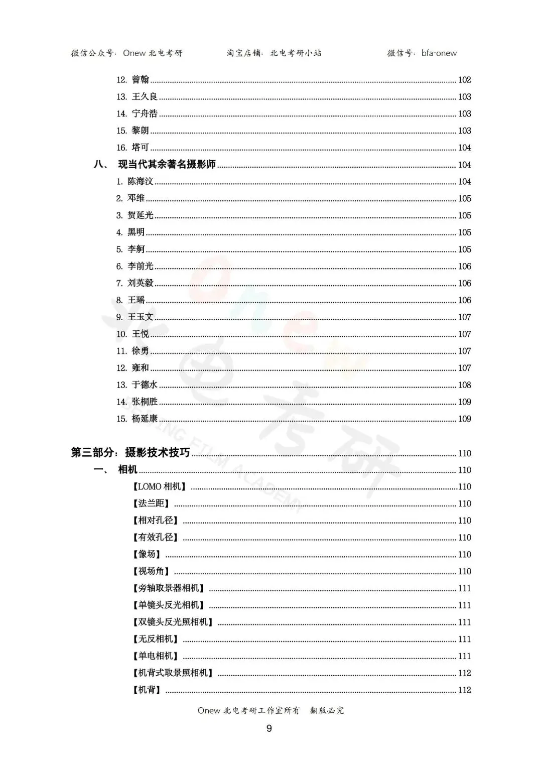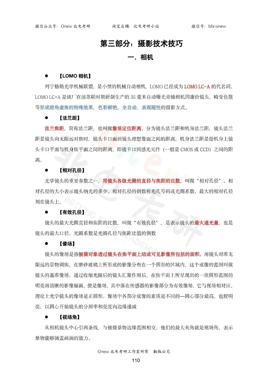 该部分为摄影技术理论知识,内容知识点涵盖相机、传感器、摄影种类、取景器、快门、测光、曝光、对焦、图片格式、滤镜、噪点、镜头、图像、像差、景深、焦距、大画幅摄影、用光等摄影技术知识。