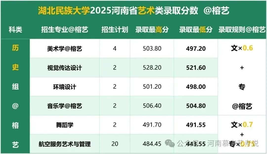 >湖北民族大学2025年河南艺术、体育类录取分数线