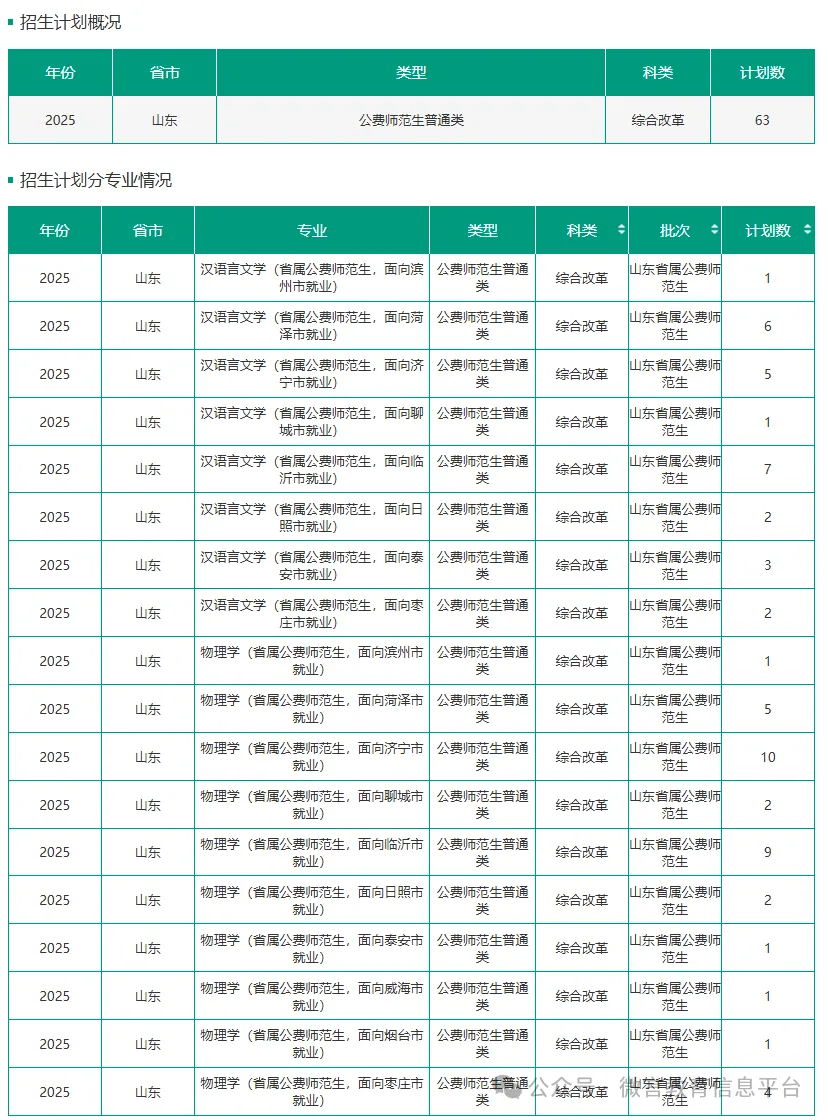 2025年省属公费师范生培养院校:山东师范大学、曲阜师范大学、济南大学、青岛大学、聊城大学、鲁东大学、临沂大学。