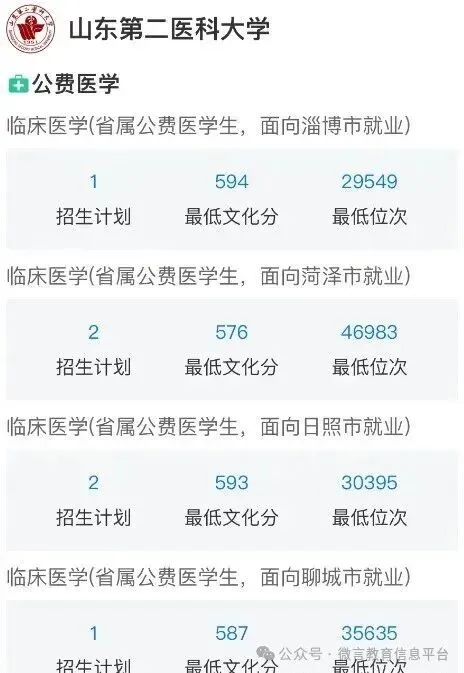 2025年公费医学生培养院校:山东中医药大学、山东第一医科大学、山东第二医科大学、滨州医学院、济宁医学院。