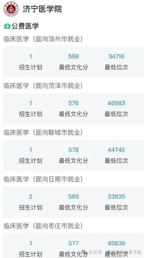 山东第二医科大学、滨州医学院、济宁医学院暂未公布。