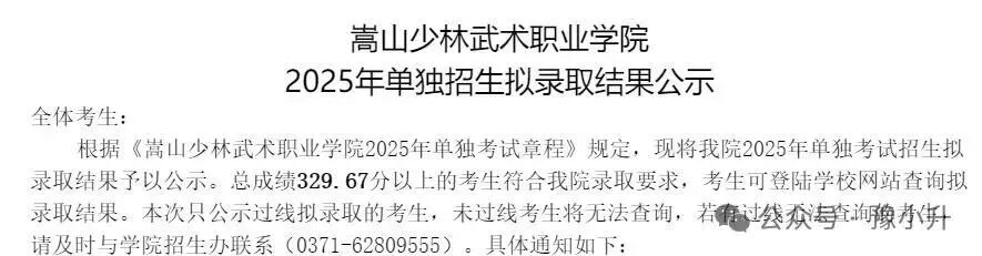 >河南单招录取分数|嵩山少林武术职业学院2023-2025年单招录取分数线