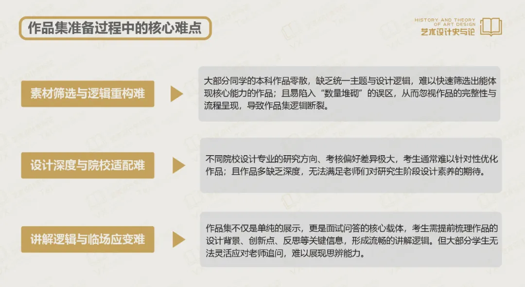 总之,我们要明确的是,设计考研面试的核心是 “专业交流” 而非 “被动答题”。史论问答的考察重点,本质是通过考生对设计史相关问题的回应,判断其是否具备研究生应有的专业素养、设计思维与学术表达能力。而史论拓展能力,是衡量上述素养的核心指标。
