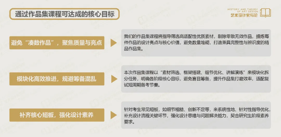 而专业作品集课程可帮助各位同学补齐设计短板、强化专业素养,同时精准适配目标院校评分标准,高效提升作品集质量。一切都是为了复试通关并最终上岸,也是缩短筹备周期、提升备考效率的重要助力。