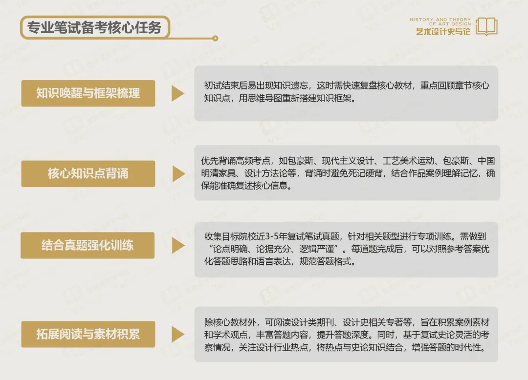 总之,设计考研史论笔试绝非知识点的简单堆砌,而是对考生知识应用、逻辑构建与学术表达能力的综合考察,而这三大能力的核心支撑,恰恰是史论拓展的深度与广度。因此,建议大家在紧扣目标院校考察重点的前提下,务必以史论拓展为核心抓手,在循序渐进的备考中逐步形成兼具深度与广度的专属答题思维,真正实现从 “记知识点” 到 “用知识点” 的能力跃升!
