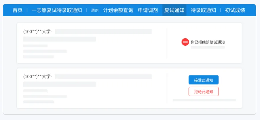 如收到通知,须在规定时间内确认是否参加。可同时接受多所学校的复试邀请。