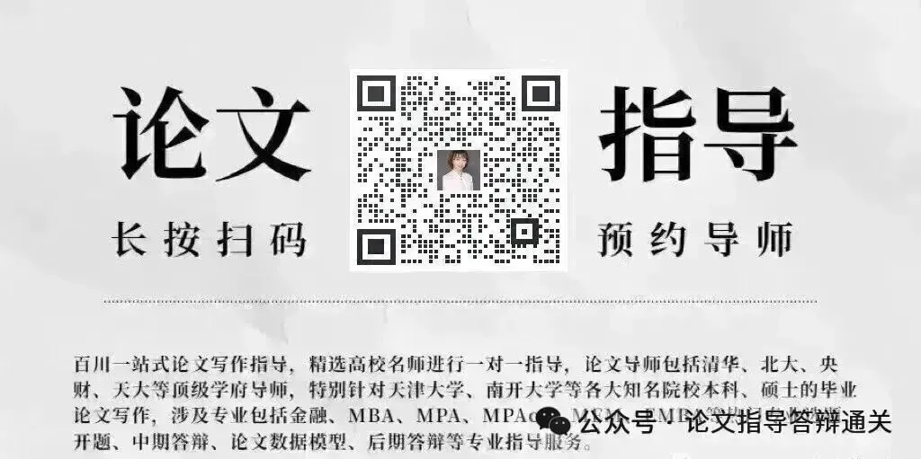 助研一站式论文写作指导,精选高校名师进行一对一指导,论文导师包括清华、北大、央财、天大等顶级学府导师,特别针对天津大学、南开大学等各大知名院校本科、硕士的毕业论文写作,涉及专业包括金融、MBA、MPA、MPAcc、MEM、EMBA等热门专业选题、开题、中期答辩、论文数据模型、后期答辩等专业指导服务。如果你有论文难题,添加下方老师微信预约论文写作导师1vs1服务。
