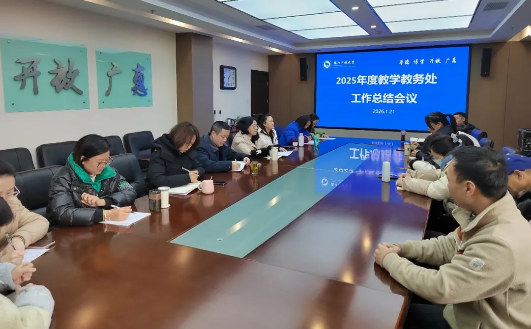 1月21日,德阳市开放大学教学教务处组织召开2025年度工作总结会议,全面回顾过去一年工作成效与不足,系统谋划2026年发展思路与工作重点。教学教务处全体人员参会,学校党委专职副书记刘志勇到会指导并作讲话。