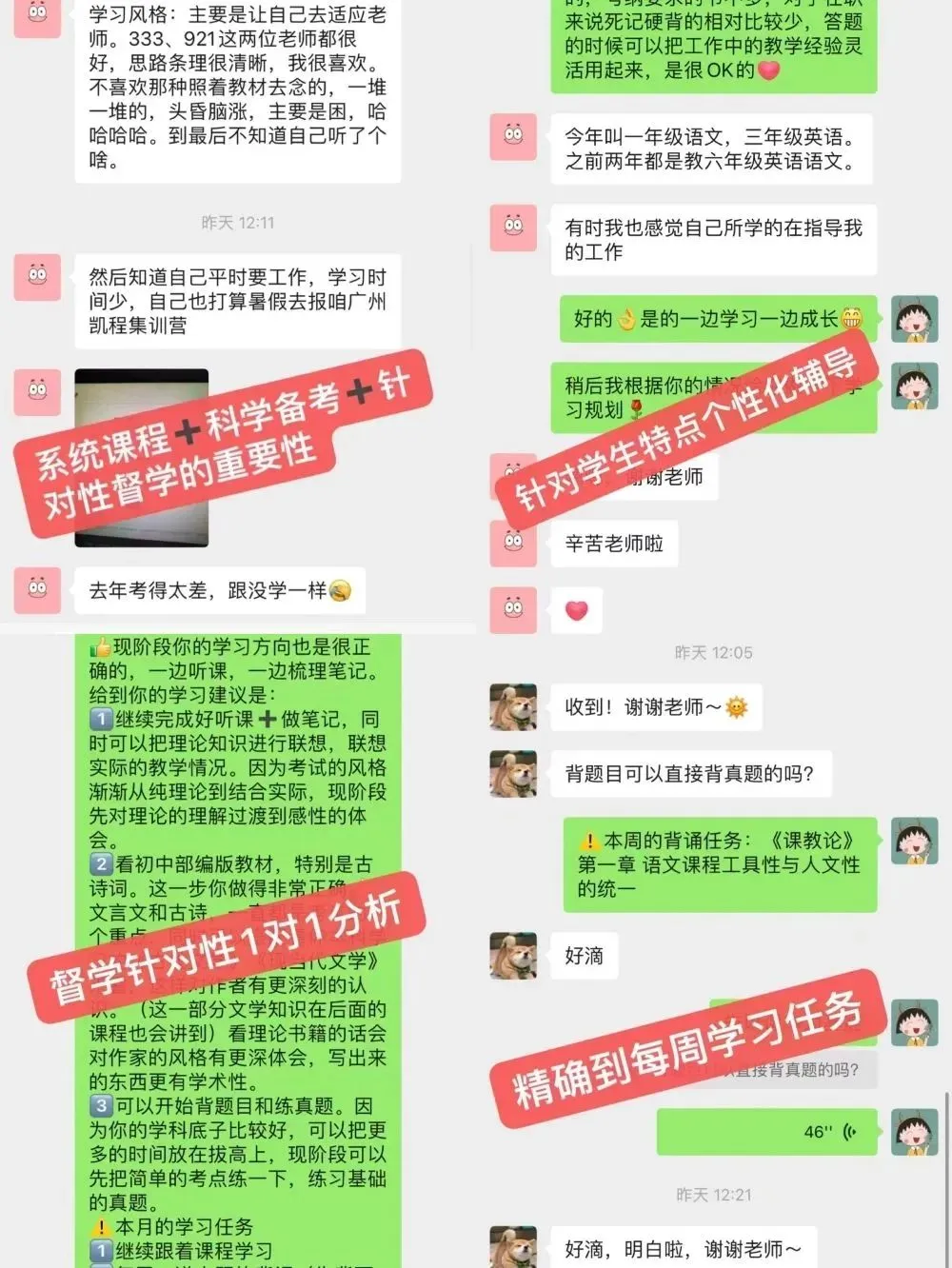老师们会跟进听课背书等完成情况,进行阶段性总结、反思与建议,随时根据实际情况进行调整。