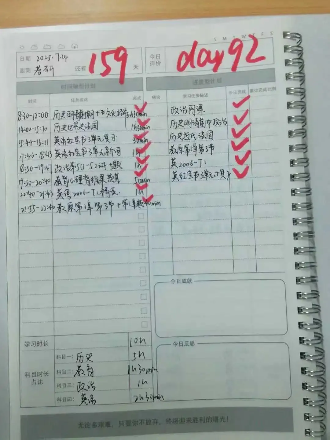 除了具体复习进度上的记录、跟踪和反馈之外,班主任还会监督大家的备考状态,通过考勤、签到、监督等等管理措施,督促同学们保持良好作息和复习状态。
