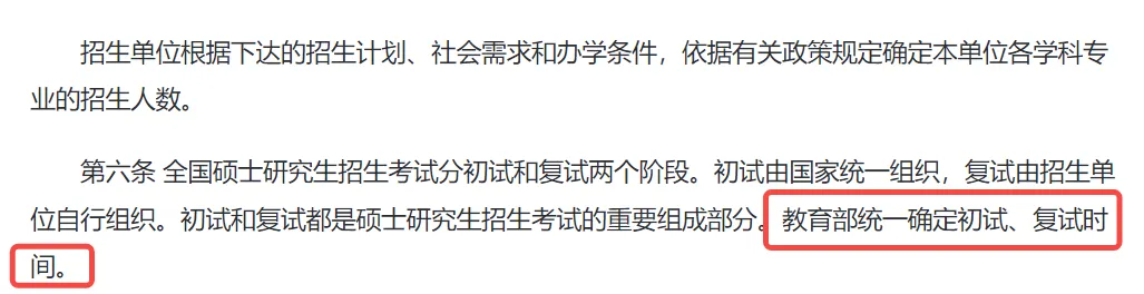 对比24年的政策,25研招规定明确加了一句“教育部统一确定初试、复试时间”。往年都是各院校自己定复试时间,有的早有的晚,不仅考生要天天蹲不同院校的通知,信息不对称不说,还容易出现“这边复试完没上岸,心仪院校复试已经结束”的尴尬。