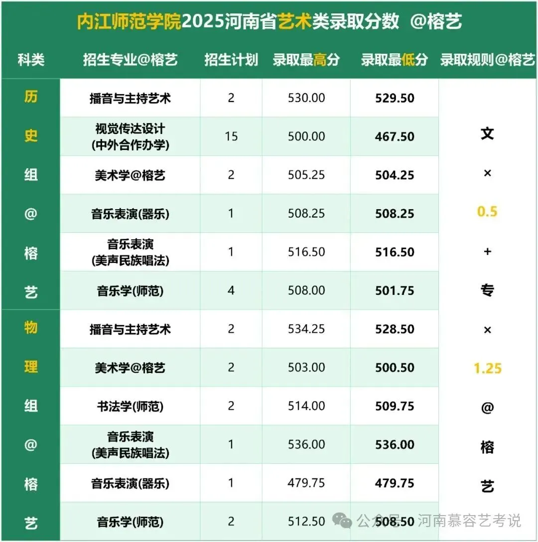 >内江师范学院2025年河南艺术、体育类录取分数线