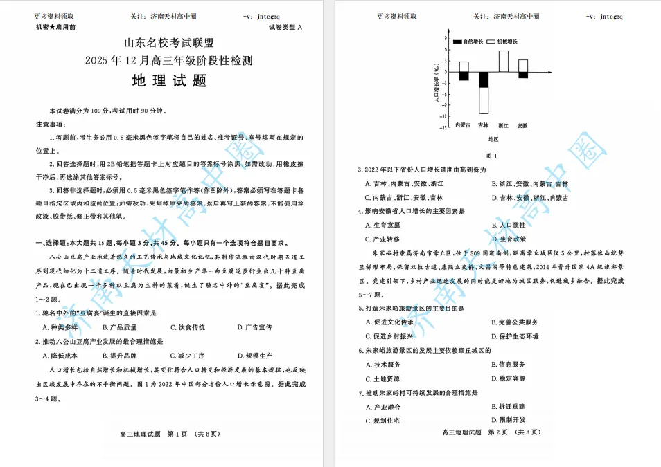 近期高中各年级真题试卷领取,可以+材材老师微信~
