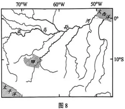 (2)分析气候异常和农业生产活动扩张对甲区域6—8月地表径流量的影响。(8分)