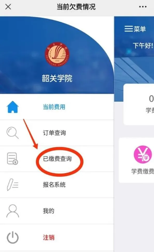韶关学院校园统一支付平台缴费及票据查询流程图