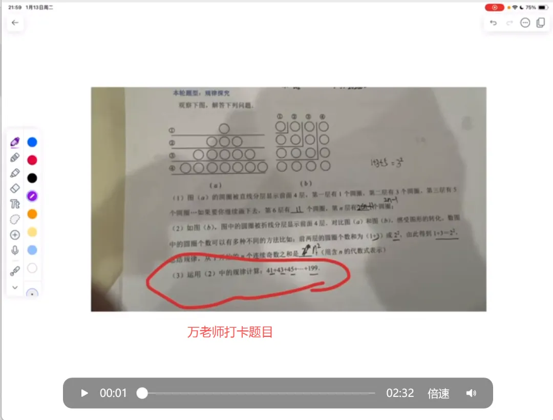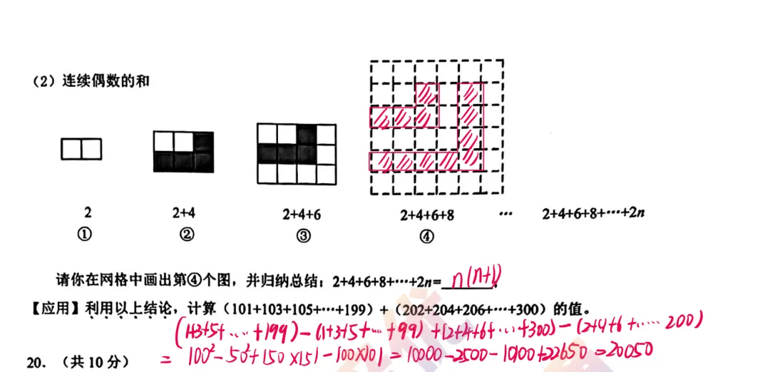 后者:数形结合,特别是最后一个应用,其实本质上考察的就是有理数综合应用,本质就是考察等差数列的前n项和,在我们讲有理数综合以及找规律的章节的时候均有涉猎,但是对于孩子而言,考场应对,是比较有难度的。