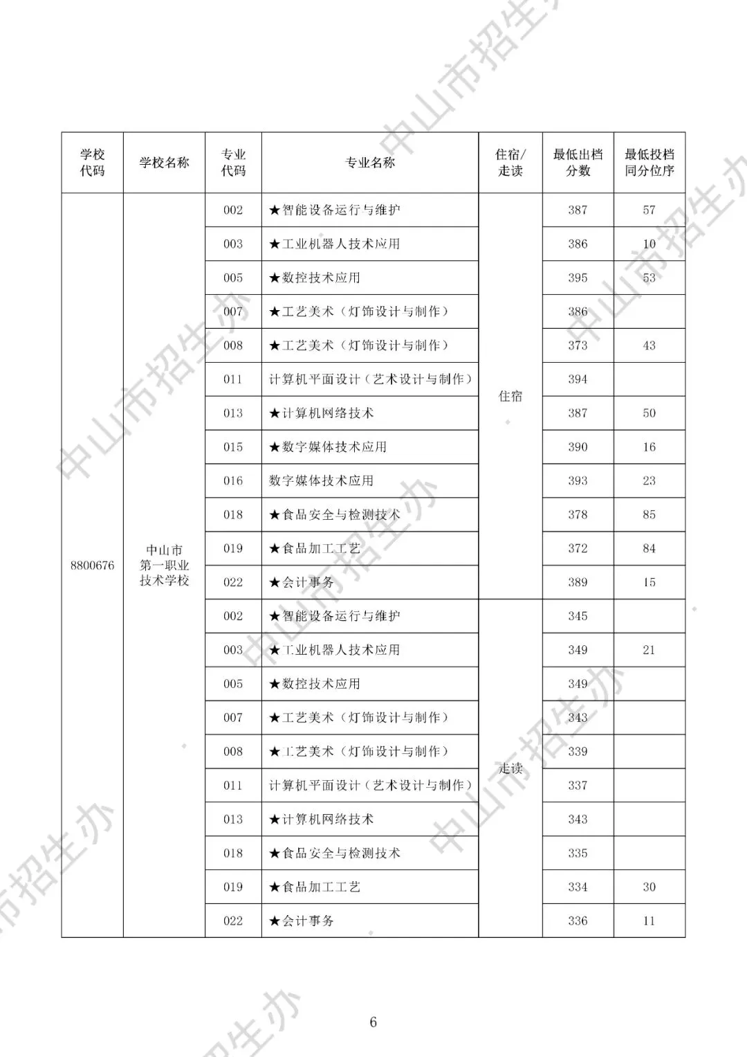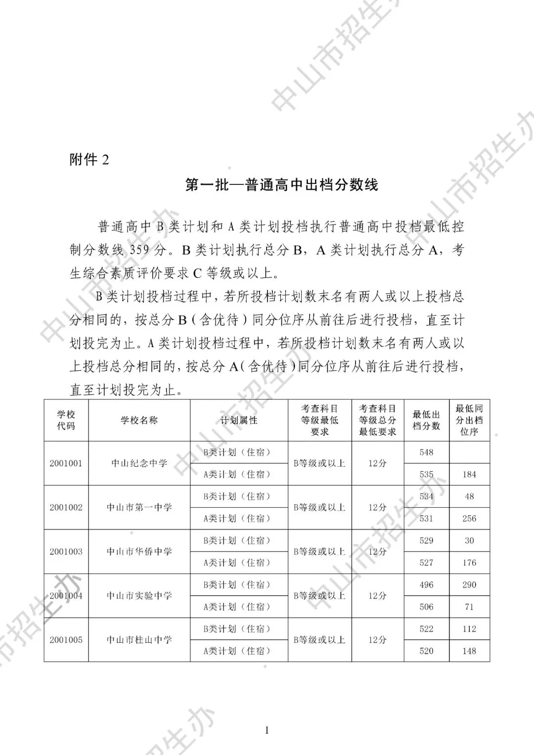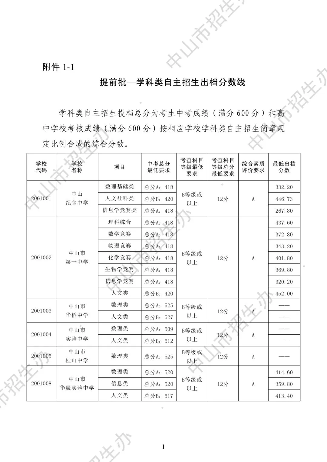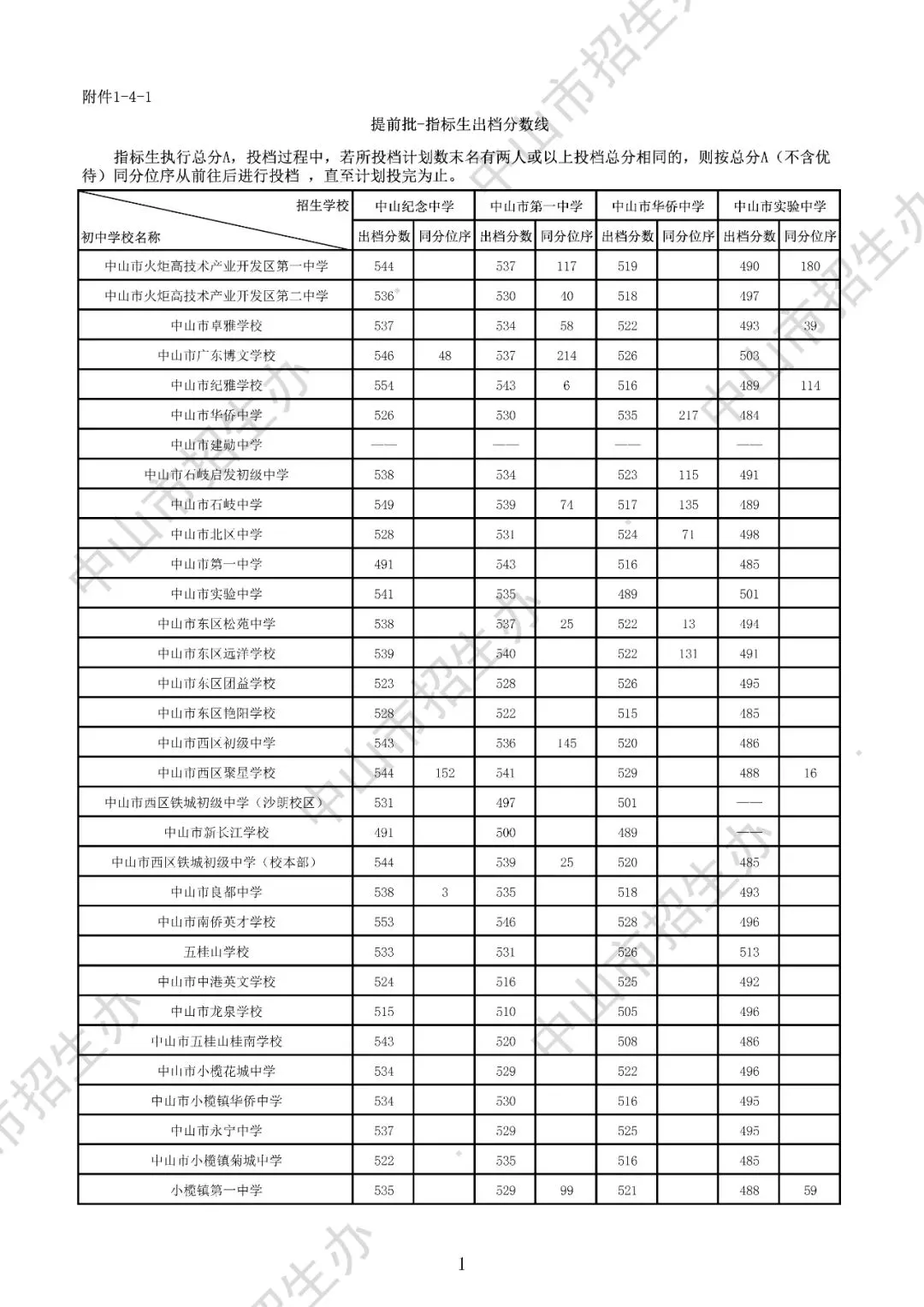 2025年中山市中考录取分数线汇总